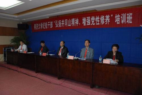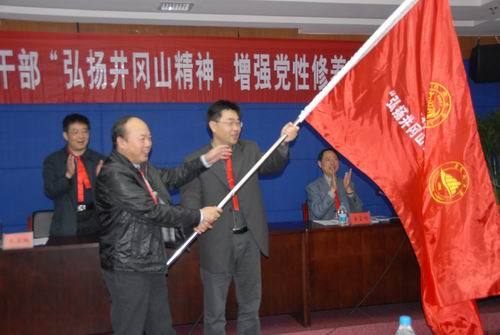 4月19日上午,同济大学第二期纪检干部“弘扬井冈山精神,增强党性修养”培训班在校开班。同济大学井冈山革命传统教育基地揭牌仪式同时举行。同济大学党委副书记、纪委书记姜富明出席并讲话,我校党委书记万继抗为培训班授旗,姜富明与我校校长张泰城为基地揭牌。校党委副书记、纪委书记金桂英致辞,校长助理刘春主持。