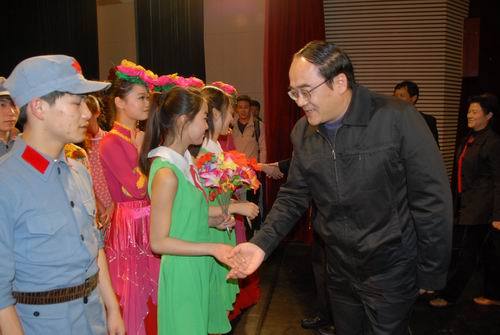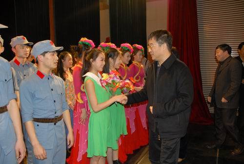 4月9日晚上,全国高校院系分党委(党总支)书记示范培训班全体学员在我校观看了音乐舞蹈史诗《井冈山》教学演出,这也是节目公演以来的第123场演出。教育部思政司副司长王光彦观看了演出,校领导张泰城、金桂英、吕玉华陪同观看,我校200余名大一新生也一起观看了演出。 演出结束后,王光彦以及张泰城、金桂英、吕玉华等走上舞台接见大学生演员并祝贺演出成功。清华大学法学院党委书记黎宏代表培训班全体学员表示,演出非常精彩,思想性、艺术性、感染力都很强,使全体学员深受感染和震撼。