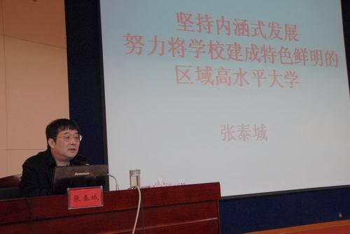 张泰城希望,全校教职员工特别是处级领导干部和高学历高职称教师,要坚定信念、艰苦奋斗、勇于进取、勇于胜利,要加强能力建设,克服能力不足,要尊重规律,研究规律,按规律办学,要改善办学条件,为学校发展提供支撑,要创新体制机制,推进现代大学制度,早日实现建设特色鲜明的区域高水平大学的目标。
