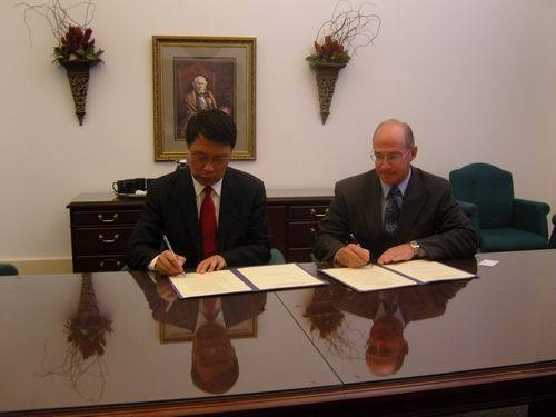 12月19日,应美国拉马大学邀请,王伴青副校长一行在拉马大学国际中心主任姜先生的陪同下会见拉马大学常务副校长Stephen A Doblin博士,陪同会见的还有拉马大学研究生院兼工学院院长Victor Zaloom博士。拉马大学常务副校长Stephen A Doblin博士对于王伴青副校长一行的到来表示热烈欢迎,并介绍了拉马大学的基本情况及院系设置情况。王伴青对拉马大学的热情接待和周密安排表示感谢,并介绍了井冈山大学的基本情况。双方就合作协议交流意见后,由拉马大学常务副校长Stephen A Doblin博士和井冈山大学副校长王伴青教授分别代表双方签署了《中国井冈山大学与美国拉马大学合作备忘录》。签字仪式后,王伴青副校长代表井冈山大学向拉马大学赠送了礼物,并邀请拉马大学校方及教师前来井冈山大学访问与交流,拉马大学常务副校长Stephen A Doblin博士表示将在适当的时候回访井冈山大学。访问期间,访问组分别会见研究生院兼工学院院长Victor Zaloom博士、文理学院副院长Cruse D Melvin博士、物理系副主任Cristian Bahrim博士、艺术与传媒学院院长Russ A Schultz博士、护理系主任Elieen Deges Curl博士。会谈结束后访问组参观了拉马大学校园、生物学实验室和标本室、留学生宿舍等。中午拉马大学常务副校长Stephen A Doblin博士宴请了王伴青一行。(国际交流处)