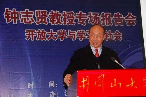 根据江西省社会科学学术活动周安排,12月3日下午,江西广播电视大学副校长、江西师范大学远程教育研究所所长钟志贤教授在我校举办《开放性大学与学习型社会》专场报告。我校师生300余人聆听了报告。报告会由副校长曾建平教授主持。 报告从《国家中长期教育改革和发展规划纲要》的基本指导思想入手,呼应十八大“建设学习型社会、促进教育公平”的教育理念,围绕“开放大学是什么?”、“什么是学习型社会?”、“学会学习:做学习型个人”三个方面进行了深入阐述。钟志贤教授指出,以现代信息技术为支持,实施远程开放教育的开放大学的建设对于促进教育公平和教育均衡发展具有重要意义。开放大学是终生学习的支柱、全民学习的平台、人生进步的阶梯。学习型社会的重要目标在于为终身学习提供相应的环境。他倡导大家做一个有信息素养的人,学会学习、学会生存。