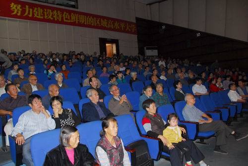 10月23日下午,学校在音乐厅隆重举行2012年重阳节庆祝活动,校党委副书记、纪委书记金桂英主持,党委委员、副校长吕玉华致辞,相关部门和各学院主要负责人出席,近400名离退休老同志参加。