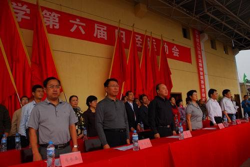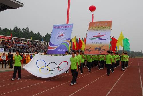 10月24日,我校第六届田径运动会隆重开幕,在校的领导万继抗、金桂英、王伴青、曾建平、肖长春、吕玉华出席,万继抗宣布运动会开幕,王伴青致开幕辞。 在入场仪式上,18个学院的运动员代表依次列成整齐的方阵,以崭新的精神风貌、高昂的斗志接受了校领导的检阅。