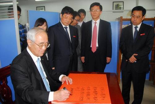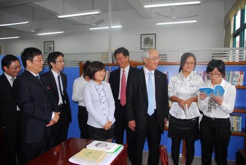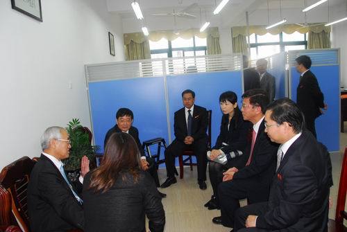 10月29日,日本创价大学校长山本英夫等在张泰城、曾建平、肖长春的陪同下实地参观了井冈山大学池田大作研究所。 研究所内陈列着日本创价学会向我校赠送的286册关于池田大作先生的著作和研究资料,以及给我校访日人员定期寄送相关资料和我校有关池田大作的研究成果,山本英夫看后感到十分高兴。