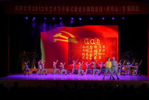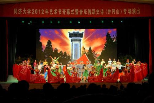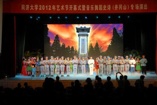10月16日晚,音乐舞蹈史诗《井冈山》在同济大学成功举行了第二场演出,同济大学师生包括部分外籍教师和留学生,在同济大学挂职锻炼和进修学习的同济大学对口支援高校的干部教师,学校附近街道、社区居民等两千多人,自发前来同济大学大礼堂观看,部分观众是连续第二次观看。同济大学党委副书记姜富明和我校副校长吕玉华等出席观看。节目演出前,现场还播放了由同济大学宣传部和传播与艺术学院联合精心制作的精美宣传片《一日之“济”》和动画《同舟共济》。 演出现场,两校大学生深情的表演,精美的视频画面,富有冲击力的音乐,使观众有身临其境之感。演出结束后,许多观众还久久不愿离去。年老的观众说,了解八十五年前革命先辈的奋斗历史,对青年师生尤其是同济大学大多数有海外教育背景的青年教师来说,非常有必要,也非常有意义,可以让青年人铭记历史,也可以让历史启迪未来。