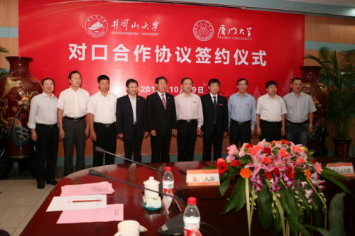 为促进江西革命老区高等教育事业发展,加快老区人才培养工作,厦门大学与井冈山大学本着积极务实的原则,经友好协商,达成对口合作协议。两校将充分发挥各自优势,以人才培养工作为中心,以学科专业建设、师资队伍建设、学校管理制度与运行机制建设为重点,在平等互惠的基础上,通过资源共享等形式促进两校的协同发展。通过对口合作,促使井冈山大学在教学、科研和管理水平方面有所提高,为井冈山大学的长远发展打好基础,同时井冈山大学竭力提供优势特色资源,与厦门大学联合申报攻关重大项目,实现双赢。