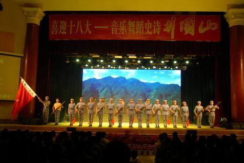 为迎接党的十八大胜利召开,10月19日晚,能容纳4000人的厦门大学大会堂内座无虚席,音乐舞蹈史诗《井冈山》应邀在这里举行首场演出并取得圆满成功。厦门大学党委书记杨振斌,党委常委、组织部长白锡能,校长助理贺祖斌等出席观看。井冈山大学校长张泰城,副校长曾建平、吕玉华,有关部门和学院负责人出席观看。厦门大学全体国防生以及各学院师生观看。集美大学、厦门理工学院、厦门大学嘉庚学院、厦门医学高等专科学校等师生代表也前来观看。