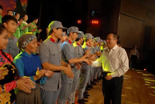 厦门大学45名国防生作为群众演员,参加了《十送红军》节目的演出。本次演出是节目自2006年3月公演以来的第118次教学演出,观众总共达到近10万人。