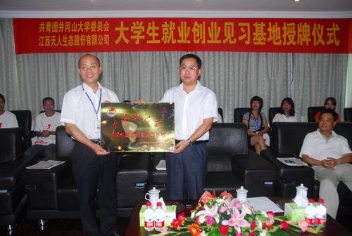 7月2日下午,校团委和天人集团联合举行了大学生就业创业见习基地授牌仪式,副校长肖长春、井冈山经济技术开发区党工委副书记贺云生、天人集团综合管理中心总监司健康出席并讲话。校团委书记郭新春介绍了基地建设方案。