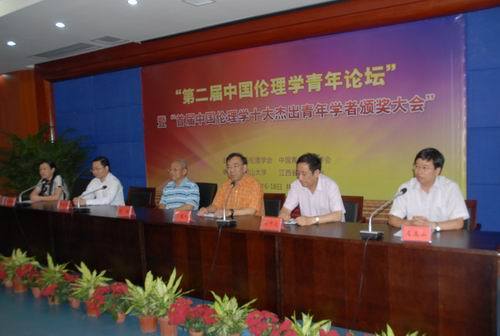 为表彰和奖励在伦理学研究中学术方向正确、学术道德规范、学术业绩突出的青年学者,促进我国伦理学事业的繁荣与发展,受中国伦理学会的委托,中国青年伦理学会举行了首届中国伦理学十大杰出青年学者评选活动。中国人民大学哲学院博士生导师曹刚教授,湖南师范大学伦理研究所副所长、博士生导师李培超教授,东南大学哲学系主任、博士生导师田海平教授,清华大学人文社科学院唐文明教授,南京师范大学公共管理学院博士生导师王露璐教授,中共江苏省委党校副校长、博士生导师杨明教授,中国社会科学院哲学研究所伦理学研究室副主任、博士生导师杨通进研究员,井冈山大学副校长、博士生导师曾建平教授,中南大学公共管理学院院长、博士生导师左高山教授等10位青年才俊,受到隆重表彰。