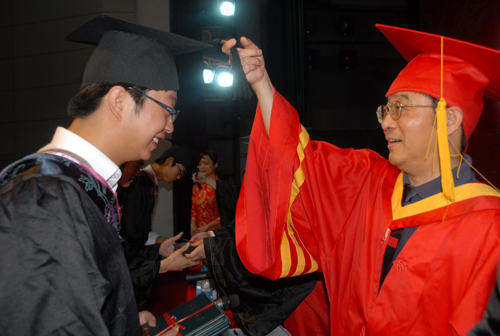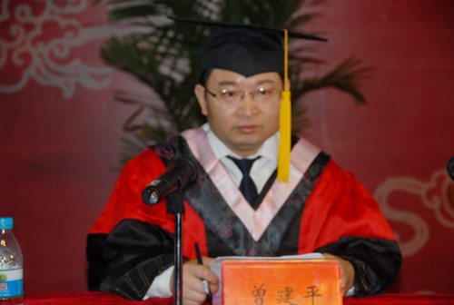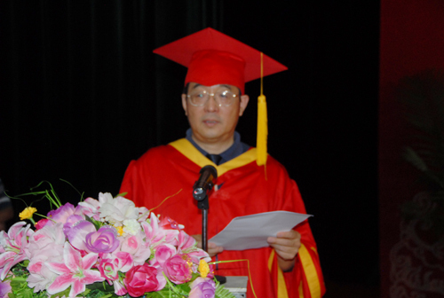 6月18日,我校隆重举行了2012届毕业典礼暨学士学位授予仪式。校长张泰城出席并讲话,副校长桂国庆宣布毕业生名单和学士学位获得者名单,副校长曾建平主持典礼,副校长肖长春、吕玉华,校长助理刘春出席。校领导为毕业生颁发毕业证书,为学士学位获得者颁发学位证书。各学院负责人,学校有关部门负责人,教师代表、学生代表共1400余人参加典礼。教师代表、外国语学院袁邦株教授,学生代表、人文学院08对外汉语专业刘倖倖同学分别发言。