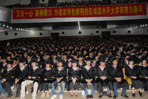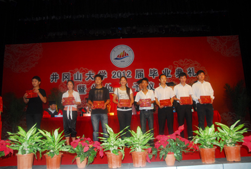 张泰城指出,2012届毕业生积极投入到专业学习、学科竞赛、社会实践等各项活动。三次参加全国大学生“五月的鲜花”演出,在“挑战杯”比赛、全国数学建模竞赛、全国电子设计竞赛等屡获殊荣。在刚刚结束的第八届江西省“挑战杯”大学生创业计划竞赛中,我校获得3项金奖。今年,学校还连续四届蝉联省高校田径运动会团体总分第一名。本届学生中有1200人光荣加入中国共产党,244人被评为三好学生,37人获国家级奖学金,473人获国家励志奖学金,702人被评优秀毕业生,350多人考上了硕士研究生和公务员。