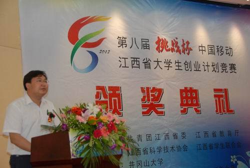 江西省政协副主席李华栋出席并为获金奖团队颁奖,省科协副主席彭玲华宣读获奖名单,校长张泰城致辞,大赛组委会主任、团省委副书记孙鑫作大会总结讲话,省教育厅副厅长洪三国致闭幕词。团省委党组副书记、团省委副书记曾萍,省学联驻会执行主席李雅晴,吉安市委常委、市总工会主席彭涉晗,市政协副主席李家祥,以及我校在家的校领导万继抗、金桂英、桂国庆、曾建平、王伴青、吕玉华出席,副校长肖长春主持。出席颁奖典礼的还有,本届“挑战杯”江西省大学生创业计划竞赛评委陈爱国、王荣、韩明远,江西师范大学副校长赵明等高校领导。吉安市有关部门负责人以及各高校团委负责人,参赛选手和指导老师参加了颁奖典礼。