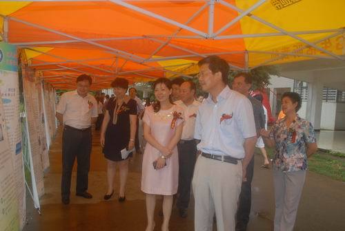 颁奖典礼前,李华栋在曾萍、洪三国、彭玲华、孙鑫、万继抗、金桂英、桂国庆、曾建平等领导陪同下兴致勃勃地参观了参赛作品展。