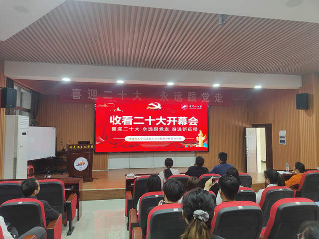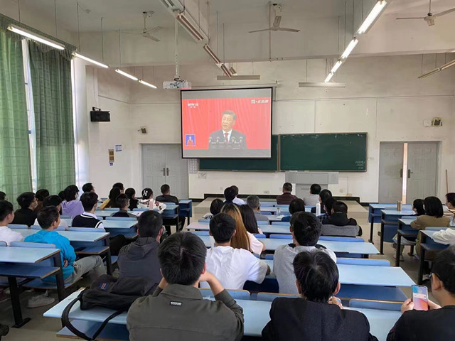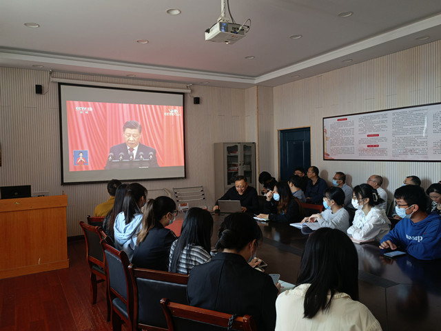 盛会凝聚人心,使命催人奋进。10月16日上午,中国共产党第二十次全国代表大会在北京隆重开幕。我校高度关注党的二十大的召开,组织党员、干部、师生员工在行政楼主会场、各基层党委分会场、团学干部分会场、思政课分会场等数十个会场集中收听收看大会盛况。从行政办公楼到各单位会议室,从马克思主义学院报告厅到食堂、教室等公共场所,处处洋溢着浓浓的喜庆气氛,全校干部师生认真聆听习近平总书记的报告,深受鼓舞、倍感振奋,激动喜悦之情溢于言表。