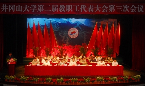 桂国庆代表学校党委、行政,对大会的召开表示热烈的祝贺,对出席会议的各位代表和全校教职员工致以亲切的问候。他说,一年来学校坚持以邓小平理论和“三个代表”重要思想为指导,深入贯彻落实科学发展观,全面贯彻国家、省中长期教育改革与发展规划纲要,大力弘扬井冈山精神,坚持改革创新,在人才培养、科学研究、服务社会、文化传承与创新等方面取得了长足进步,办学综合实力和核心竞争力有了显著提升。