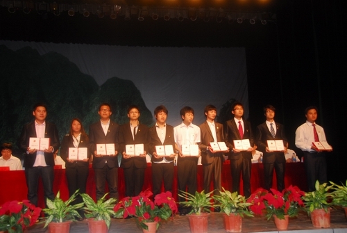 会上,电信学院团委书记刘新明代表先进集体,政法学院09公共事业管理本(1)班张爽代表优秀团员先后发了言。