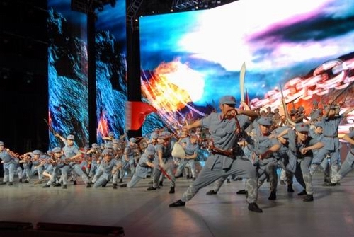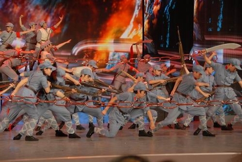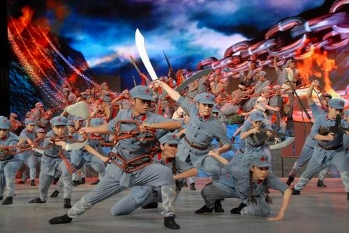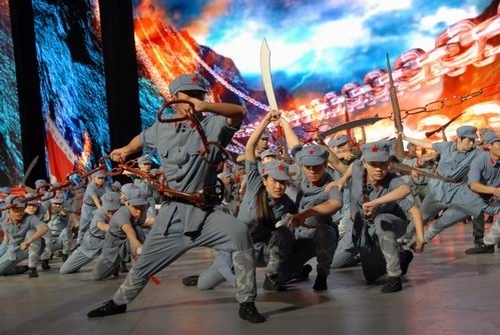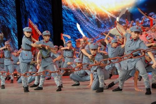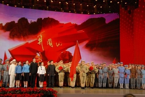 我校50名大学生与遵义师院学生联合完成的情景表演《长征》,充分表现了红军不怕牺牲、勇往直前的英雄气概,赢得观众阵阵热烈掌声。该节目列第一篇章《信仰的力量》的第三个节目,节目时长1分25秒。另外,我校有40名大学生作为五月的鲜花舞蹈团成员,参与了晚会部分大型节目的表演。井冈山大学的校旗在央视一号演播大厅高扬。