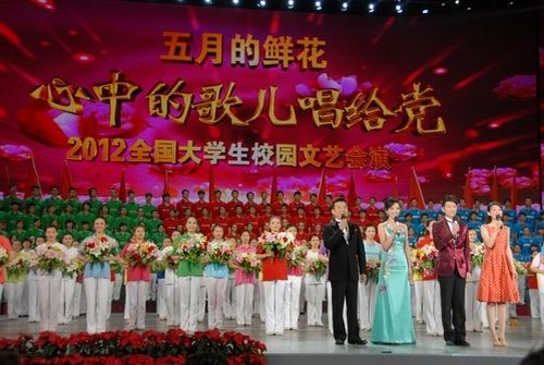 5月4日晚8时,由中宣部、教育部、共青团中央举办,中央电视台承办的“五月的鲜花—心中的歌儿献给党”2012全国大学生校园文艺会演在央视一号演播大厅激情绽放。