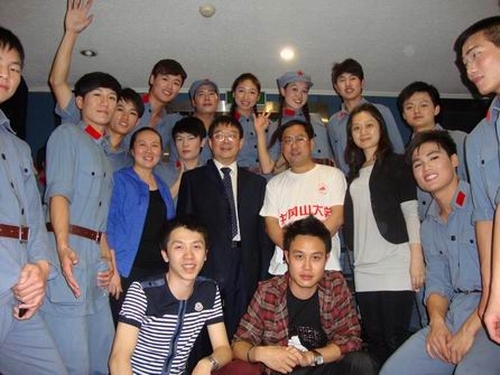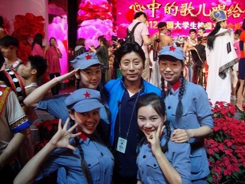 演出前,校长张泰城、副校长肖长春专程到演出现场看望参演师生,为大学生鼓劲加油,并应主办单位邀请在演出现场观看。在演出结束后,晚会总导演魏党生与我校部分参演学生合影。