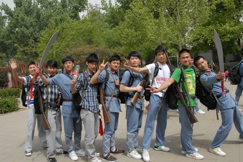 5月1日凌晨,全体师生利用休息的机会,身着红军服,排着整齐的队伍,在天安门广场观看了庄严的升国旗仪式,接受了生动的爱国主义教育。期间,大学生以青春的朝气、落落大方的精气神,再现了当年井冈山红军的良好形象,以及新时期青年学子的奕奕风采,引来了无数游客以及执勤武警、警察敬佩的目光。当大学生打着校旗、军旗在现场合影留念时,观看升国旗仪式的众多游客围上前来一次次按下快门。许多游人还走进大学生中间,要求合影,多名带小孩的游客一一要求允许自己的小孩与大学生留影。