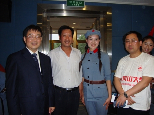 校长张泰城和副校长肖长春,应邀到现场观看。井冈山大学的校旗在央视一号演播大厅高扬。演出结束后,晚会总导演魏党生与我校部分参演学生合影。