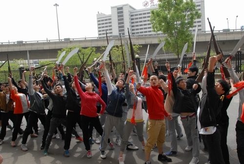 4月19日,大学生启程赴京的前一天,艺术学院还邀请南京军区驻校选培办军官,对赴京参演的全体师生进行了严格军事训练。军训以站军姿、齐步走、正步走等为主要内容,以进一步增强大学生的集体观念,进一步培养团队意识,以更加饱满的热情和更加严谨的态度,投入到赴京排练和演出中来。