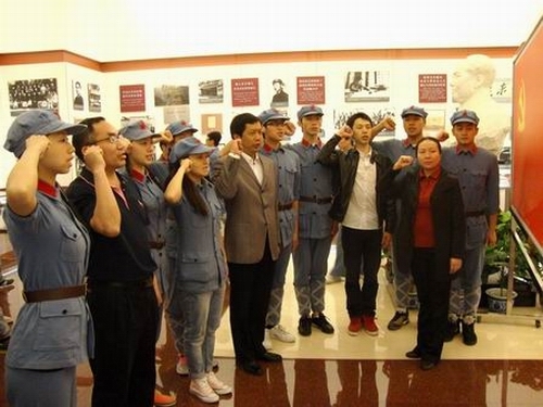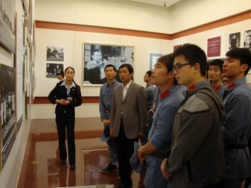 升国旗仪式结束后,我校师生来到毛主席纪念堂,怀着十分崇敬的心情,瞻仰了毛主席遗容。当工作人员得知师生一行来自井冈山,还被作为嘉宾特别邀请到毛主席纪念堂二楼,参观了毛泽东、周恩来、刘少奇、朱德、邓小平、陈云革命业绩纪念室。师生中的全体党员还在毛泽东纪念室举行仪式,重温了入党誓词。