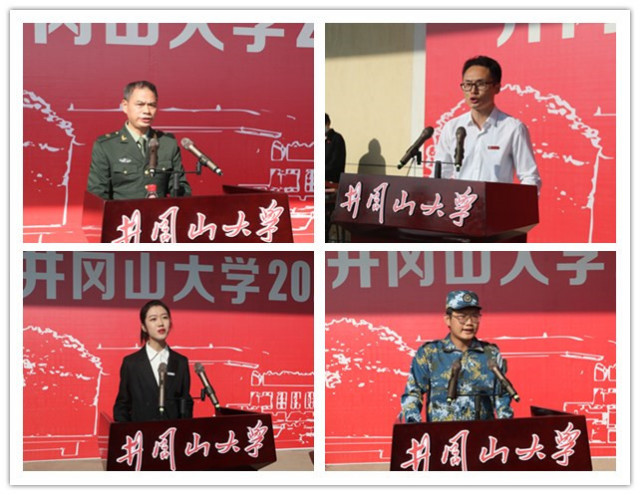 开学典礼上,还举行了新生入学宣誓仪式和新生佩戴校徽仪式,新生代表上台接受校领导佩戴校徽,全体新生庄重的为自己佩戴了校徽,现场充满仪式感和温馨感。全体新生面对校旗庄严宣誓,“秉承‘广学坚守、勤思敏行’校训,恪守学校优良校风,弘扬井冈山精神,志存高远,信念坚定……” 7600余名新生的铮铮誓言响彻云霄。