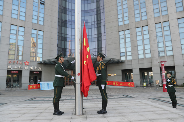为庆祝伟大祖国73岁生日,以饱满的热情迎接党的二十大顺利召开,团结引领广大团员青年永远跟党走。10月1日上午,我校于映山红广场开展“喜迎二十大·向国旗敬礼”国庆升旗仪式活动。校党委书记胡春晓,校党委副书记刘祖文,校党委常委、副校长刘利民,校党委常委、宣传部长肖洪海出席升旗仪式,各学院分管学生工作领导、各学院团委书记和负责人、校团委全体成员,第十四期“映山红”青年学院大骨班全体成员、各学院学生代表共近300人参与此次活动。
