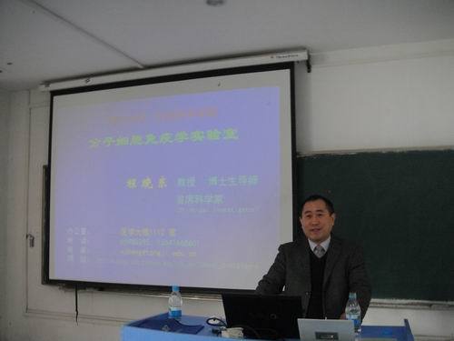 12月6日上午,程晓东教授做了“神经免疫调控与中医药研究进展”的学术报告,相关学院100名师生聆听了报告。程晓东教授用浅显易懂的语言,从11世纪中国的种人痘讲到现代免疫学,深入浅出地讲述了现代免疫学的研究内容,系统分析了神经-内分泌-免疫调控的分子机理。同时,程晓东还介绍了传统中医在重大疾病肿瘤治疗的应用,并结合中药复方、单方及中药有效成份对肿瘤治疗效果的研究实验分析了传统中医与现代医学结合的研究方法与思路。报告结束后,程晓东还悉心地为全体师生解疑答惑。