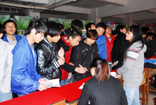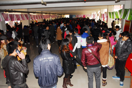 为大力推介我校2012届毕业生顺利就业,在学校领导、主管部门以及各学院的共同努力下,12月10日我校成功举办了应届毕业生供需见面会。来自全国各地,部分吉安市市直单位、吉安市13个县市区的文教卫生系统单位以及工业园区的公司企业等300多家用人单位共拿出5500多个岗位延揽我校应届毕业生,我校及兄弟高校应届毕业生数千人踊跃前往应聘。在校的领导万继抗、张泰城、金桂英、王伴青、曾建平、肖长春以及党委委员吕玉华等,到现场看望应聘学生,并对各用人单位来校选拔人才表示感谢。