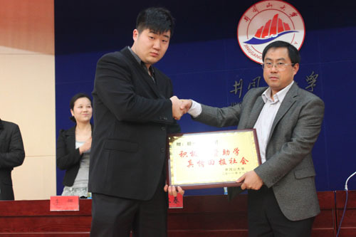 11月24日下午,我校第二届“嘉道集团赣华奖学金”颁奖大会在学术报告厅举行。校党委委员、副校长肖长春代表学校向赣州嘉道集团赠送了荣誉锦牌。嘉道集团总经理游嘉君先生、办公室主任李娜女士出席并为获奖学生颁发了荣誉证书和奖金3万元。