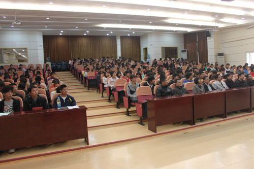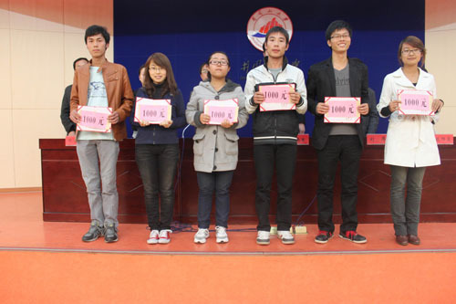 政法学院10级思想政治教育本科(1)班曹文楷同学作为获奖学生代表发言,感谢赣州嘉道集团的奖励与关爱、感谢学校的培育与关怀,并表示今后将继续努力,刻苦学习,以更优异的成绩向学校以及社会各界人士交一份满意的答卷。(学生资助中心 黄赣生)