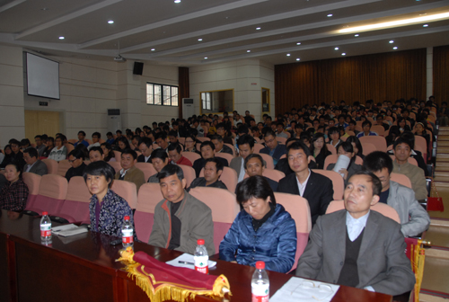 11月14日上午,我校在学术报告厅举行学生考研促进工作大会。校长张泰城出席会议并发表讲话,副校长曾建平、肖长春出席会议,校团委、科研处、教务处等部门负责人,各学院党政负责人、团委书记以及考研学生代表300余人参加了会议。会议由校团委书记郭新春主持。
