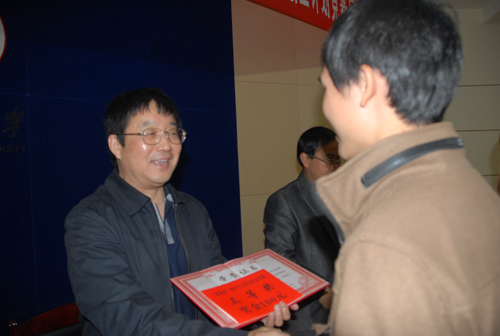 张泰城对获奖团队和老师表示了热烈的祝贺,勉励他们再接再厉,再创佳绩。张泰城强调,人才的培养不仅仅是在课堂上,还应该在实践中。“挑战杯”为学生们增长知识、提高技能提供了一个很好的平台,学生通过参与比赛,既能锻炼自己的动手能力,又能把理论与实践有机的结合,更重要的能提升综合素质,这对学生今后的就业、适应社会都具有深远的影响。