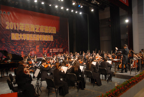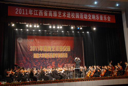 11月4日,2011年江西省高雅艺术进校园活动走进我校,南昌大学爱乐乐团来校举行交响音乐会,副校长桂国庆与1500余名师生享受了这场音乐盛宴。