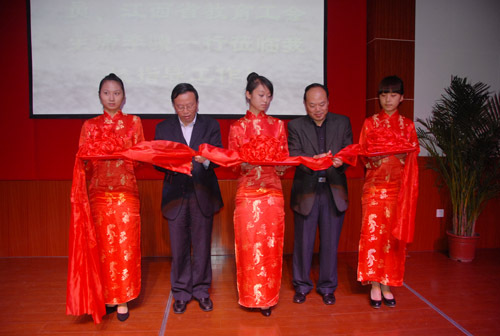 省总工会巡视员、省教育工会主席李骥和校党委书记万继抗剪彩