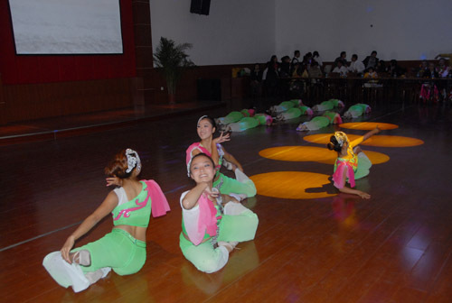 剪彩仪式后,学校还在第二教工活动中心举行了联欢歌舞晚会。师生登台表演了合唱、舞蹈、健美操、独唱、管乐小合奏等精彩的节目。李骥、万继抗、金桂英、陈渊平、王江云以及近200名师生兴致勃勃地观看了晚会。