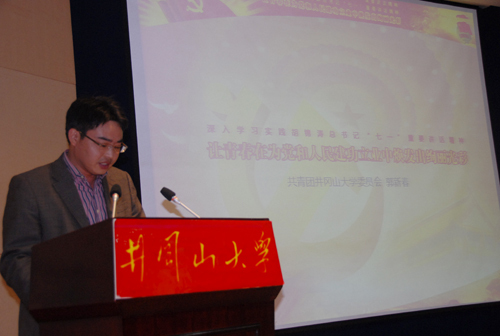 刘家桂以《党群联系理论的创新与发展》为题,从党的三代领导人党同人民群众联系思想、胡锦涛对保持党同人民群众密切联系的实践探索和理论贡献、七一讲话中胡锦涛对党同人民群众密切联系思想的新发展、我校落实党同人民群众联系思想的几点思考等四个方面进行了阐述。他认为胡锦涛同志在讲话中,对密切党群联系的一些重要观点作了再次强调,并创新了党与人民群众密切联系思想,这些思想在新时期具有重要的理论和现实指导意义。结合学校工作实际,落实党同人民群众联系的思想,党员要作密切联系群众的表率,要深入基层,帮助师生解决实实在在的困难和问题。
