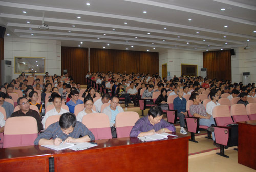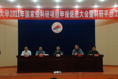 为鼓励全校教师积极申报国家级科研项目,进一步提高我校国家级科研项目的申报数量和申报质量,10月13日下午,学校召开了2011年国家级科研项目申报促进会。校长张泰城出席并讲话,副校长桂国庆主持,副校长曾建平分析了学校国家级科研项目申报工作的现状,部署了2012年国家级科研项目申报工作。副校长王伴青、肖长春出席。各学院院长、分管科研副院长;各学科负责人,博士学历、副教授职称以上人员等300多人参加。