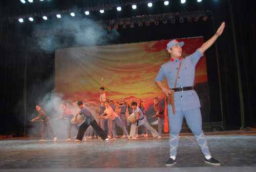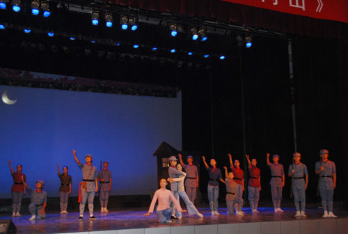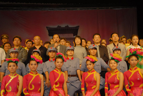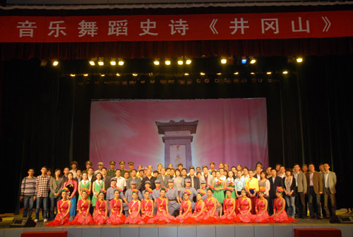 演出结束后,张泰城和学员代表走上舞台接见演员。哈尔滨工业大学研究生工作部长王宏代表全体学员发表了热情洋溢的讲话。他说,第27期全国高校辅导员骨干培训班全体学员一到井冈山大学,就重温了井冈山革命历史,全体学员以观看演出为起点,将深入地学习井冈山精神,了解井冈山革命历史,从而传承和弘扬井冈山精神。井冈山大学的大学生奉献了一场思想水平、艺术水平俱佳的演出,给全体学员上了精彩的一课,让全体学员受到了一场生动的、深刻的红色传统教育。