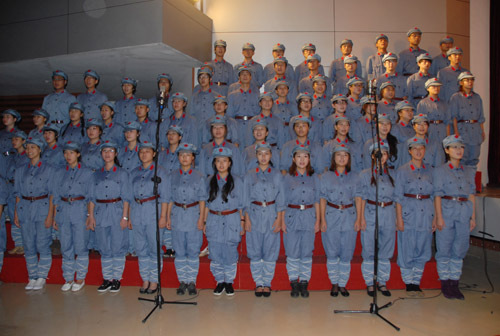 那一段历史我们不能忘记,那一种精神我们必须传承。台上演员倾情演绎,舞台两侧近300名合唱队员激情演唱,深深地感染和打动了在场的所有观众,观众们仿佛都被拉回到了那个战火纷飞的年代,许多学员和师生情不自禁地与合唱队员一起哼唱起了那些经典的红歌。