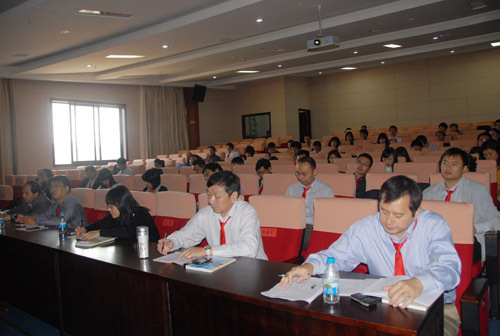 张泰城从教学内容、教学形式、教学特色等方面对本次培训班的教学设计进行了阐述,要求全体学员在学习中要做到沉稳与激情并重,理性与感性并重,内容与形式并重,单项主导与双向交流并重,自律与他律并重。