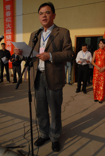 校运会主委会副主任委员、教务处长黄俭根主持开幕式,校团委副书记习军民宣布大会纪律和体育道德风尚奖评比办法,运动员代表韩俞同学代表全体运动员宣了誓,裁判员代表邹利民老师代表全体裁判宣了誓。
