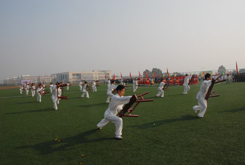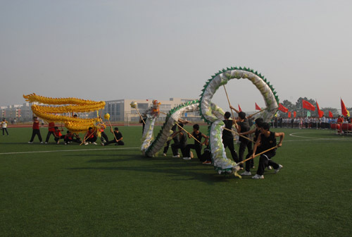 10月19日上午,在校运会开幕式上,由体育学院学生组成的民间体育艺术表演团分别表演了舞龙、舞狮、啦啦操、庐陵板凳操、永新盾牌操舞等,成为了校运会开幕式上的一大亮点。行云流水的舞龙舞狮,活力四射的啦啦操表演,刚劲勇猛、气势宏伟的庐陵板凳操表演,特别是动作粗犷、雄健、彪悍,队形变化奇特、壮美,具有浓郁民族特色和磅礴战斗气势的永新盾牌舞,引起了观众的浓厚兴趣和阵阵喝彩。这也是我校在保护、传承和发展庐陵民间体育艺术方面的一大创举。