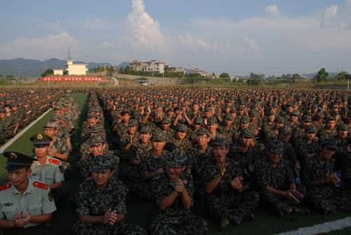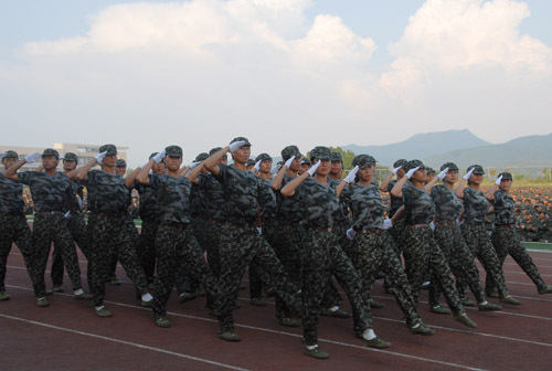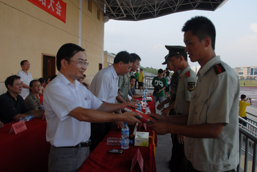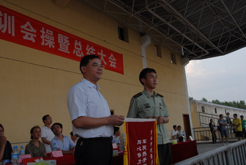 9月16日下午,新生军训总结大会隆重举行,为期9天的新生军训工作圆满结束。在校的领导桂国庆、曾建平、肖长春出席,吉安市消防支队参谋长吕文出席。桂国庆代表学校向吉安市消防支队赠送了锦旗,肖长春作总结讲话,武装部副部长熊百华主持。