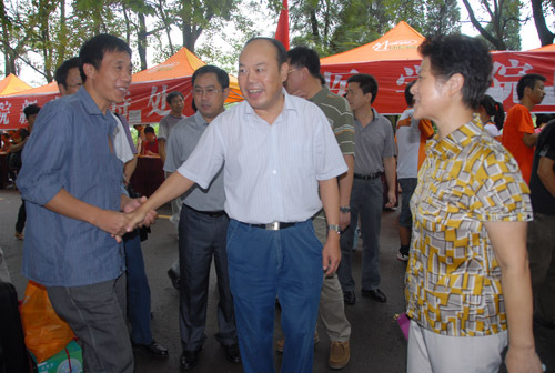 9月1日上午,在校领导万继抗、金桂英、桂国庆、王伴青、肖长春,在有关部门负责人的陪同下,到各学院报名点看望2011级新生及家长,慰问工作人员。