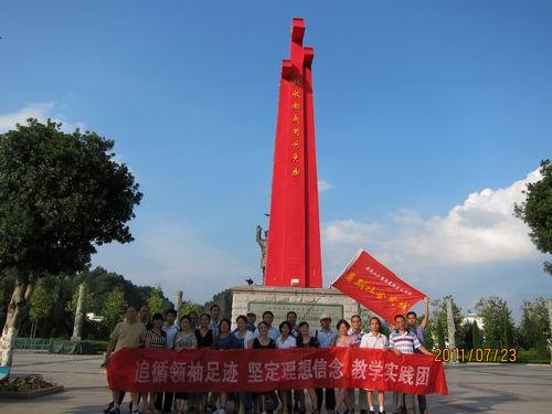 为落实教育部印发的《高等学校思想政治理论课建设标准(暂行)》,深入贯彻胡锦涛在庆祝清华大学建校100周年大会上的讲话中要求把创新思维与社会实践结合起来的精神,根据“05”方案课程改革的要求,不断提高马克思主义理论课教学的针对性、实效性,马克思主义学院部分教师,于7月17日至23日开展了赴湘赣边革命根据地“追寻领袖足迹,坚定理想信念”为主题的社会实践活动。