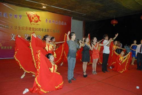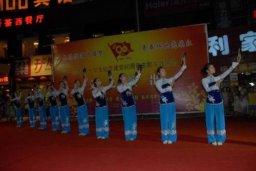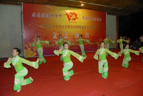 7月5日晚和7月6日晚,由同济大学、井冈山大学、遵义师范学院、延安大学、中国人民大学联合组成的“杜鹃烂漫中国梦、青春辉映党旗红”全国大学生纪念建党90周年主题活动实践团60余名队员,在永新县城广场和井冈山市砻市镇会师广场分别举行了两场文艺演出,吸引了永新县和井冈山市砻市镇四里八乡几千名群众前来观看。